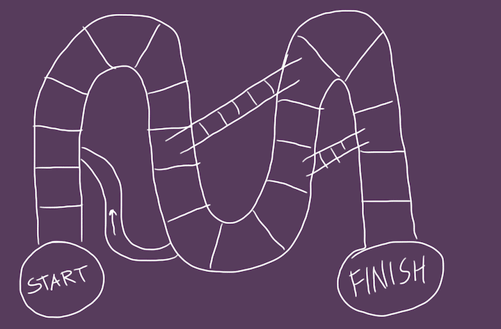 Le principe est connu : avancer, reculer, rebondir, dans un parcours semé d’aléas. Tout le monde démarre et termine au même point, mais le chemin diffère à chaque tentative.