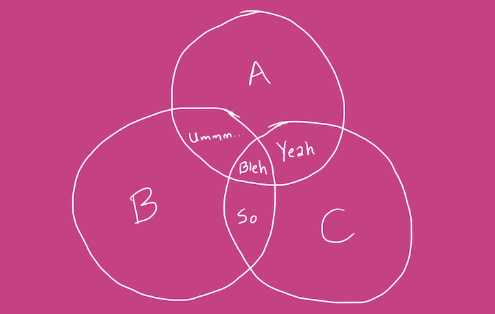 Exemple : How do you want your graphic design? Pour une collection réjouissante de diagrammes de Venn : Diagrams Venn Fuck Yeah sur Tumblr.