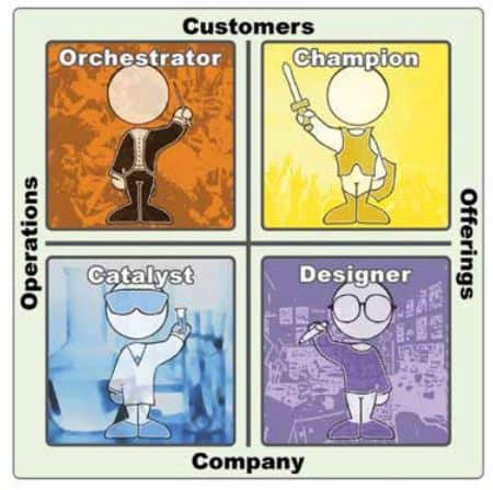 Nous venons de publier ce nouveau cadre dans « The Rôles of the Chief Experience Officer » sur les pages de l’édition hivernale de la revue de l’American Management Association, AMA Quarterly. (Et un cri à Kevin Dulle de The Thinking Canvas pour les merveilleux dessins qui font un si grand travail de donner vie à nos idées. Merci, Kevin !)